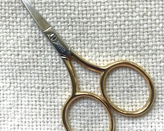 Large Finger Hole Gold Handle Bohin 3-1/2” Embroidery Scissors (Model B-24349