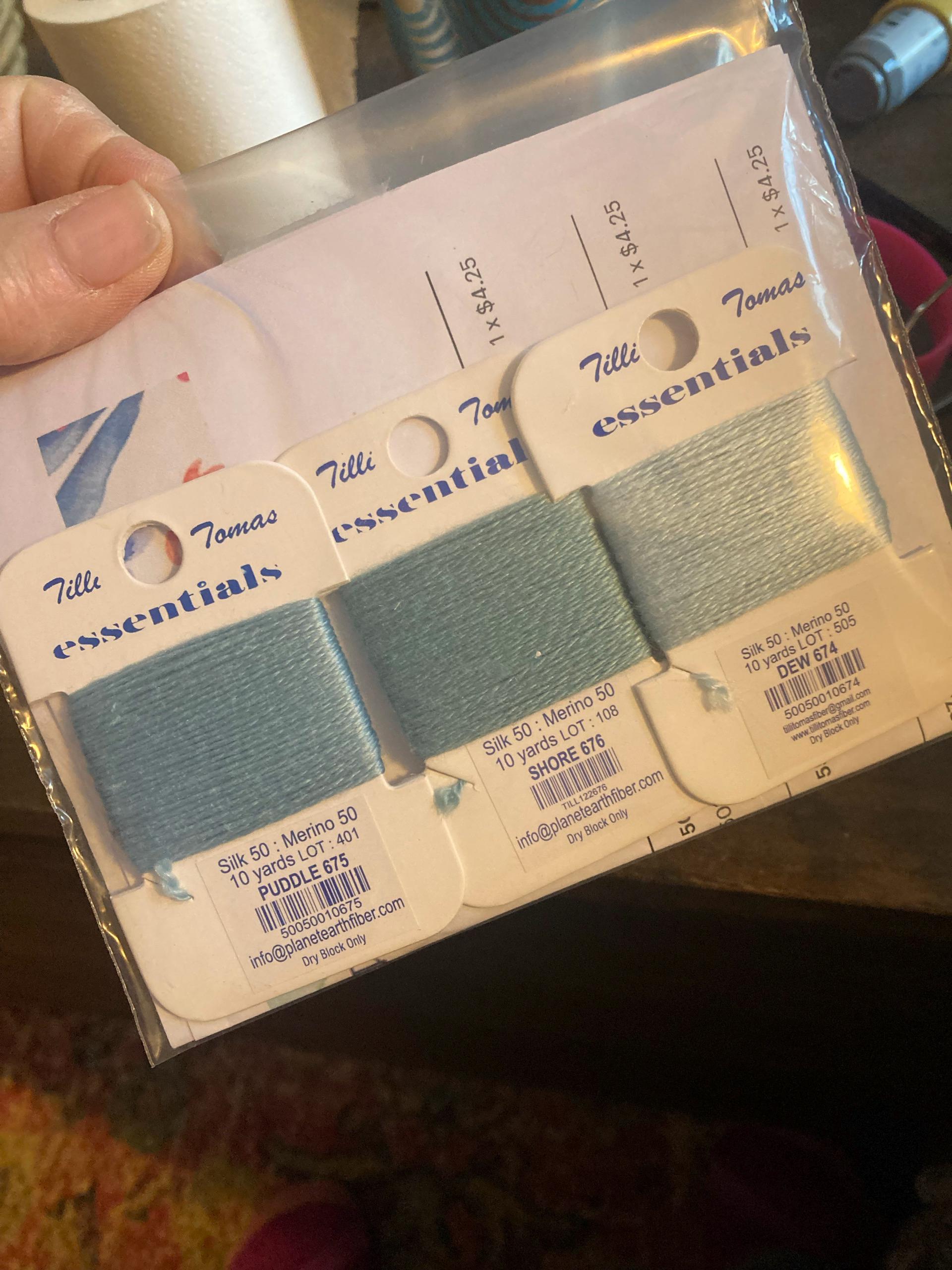 Essentials comes on small cards of 10 yards per skein. If you are stitching a painted canvas with lots of colors, this is the perfect thread.